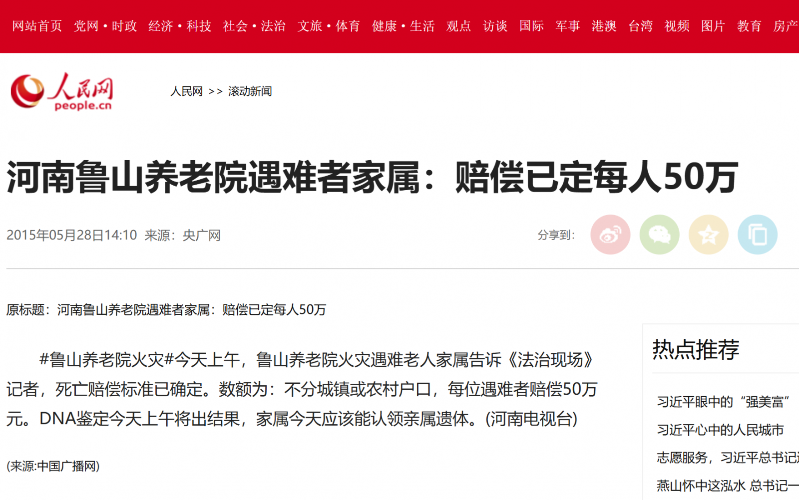 与此次事故相似的案件,当属2015年5月25日发生的河南鲁山县康乐园老年公寓5.25特别重大火灾事故,造成39人死亡、6人受伤。